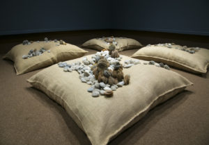 Atmospheric nature sounds from the Boreal forest fill the gallery in January, where the floor is covered with islands of pillows nestling clusters of stone-like glass sculptures. Visitors are invited to explore, touch and rearrange the rocks, a gentle metaphor for the fragility and vicissitudes of nature, and of the impact we have on it as humans.