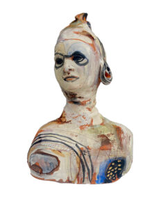 Johnson-Hardy’s evocative clay figures capture the spiritual and earthly dimensions of memory, hope, and struggle. Describing these figures as recurring characters from her childhood, her sculptures “wear human anxieties and faults while being filled with the kindness of animal souls”.